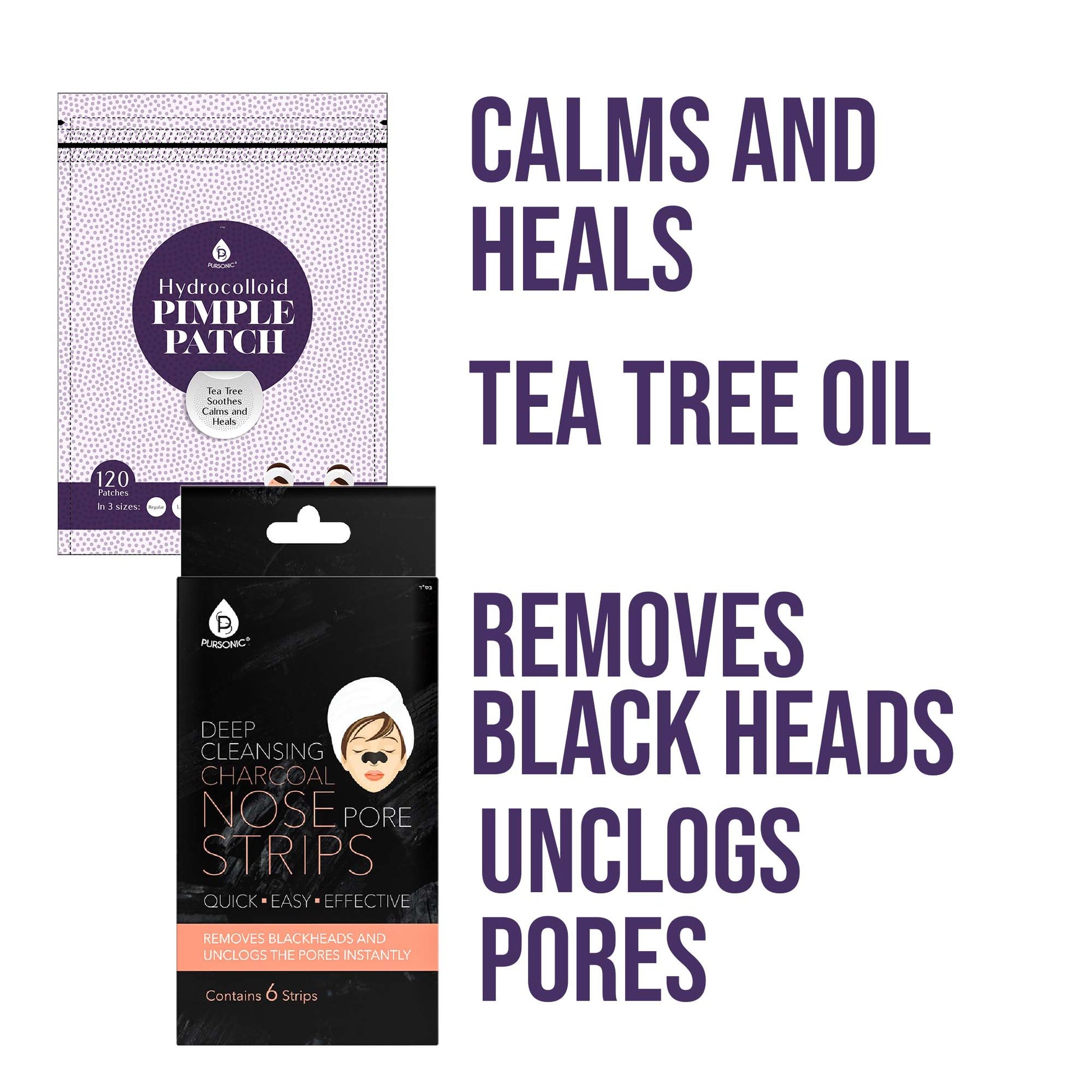 Transform your skincare routine with the Pursonic Deep Cleansing Charcoal Nose Pore Strip 6-Pack and Hydrocolloid Pimple Patch Bundle. Perfect for those seeking clearer, radiant skin, this bundle effectively unclogs pores and addresses acne.